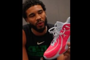 塔图姆晒出一段自己的视频,可以看到他已上脚自己的球鞋JT4,并开始进行有球训练了。